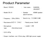 1.YESIDO EK01 Stereo garso žaidimų ausinės su mikrofonu ir LED šviesos dizainu