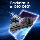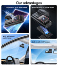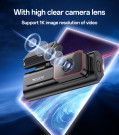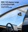 Vaizdo registratoriuje integruotas plataus kampo objektyvas (kampas iki 145°) su FullHD 1080P raiška priekinėje kameroje.