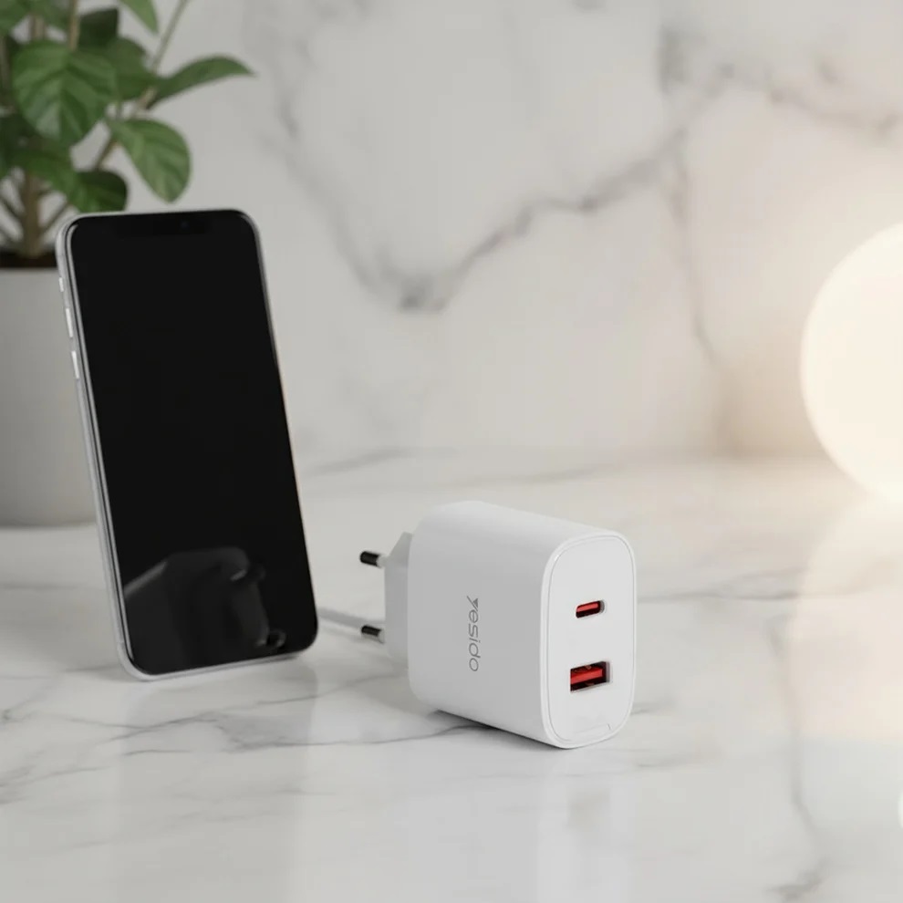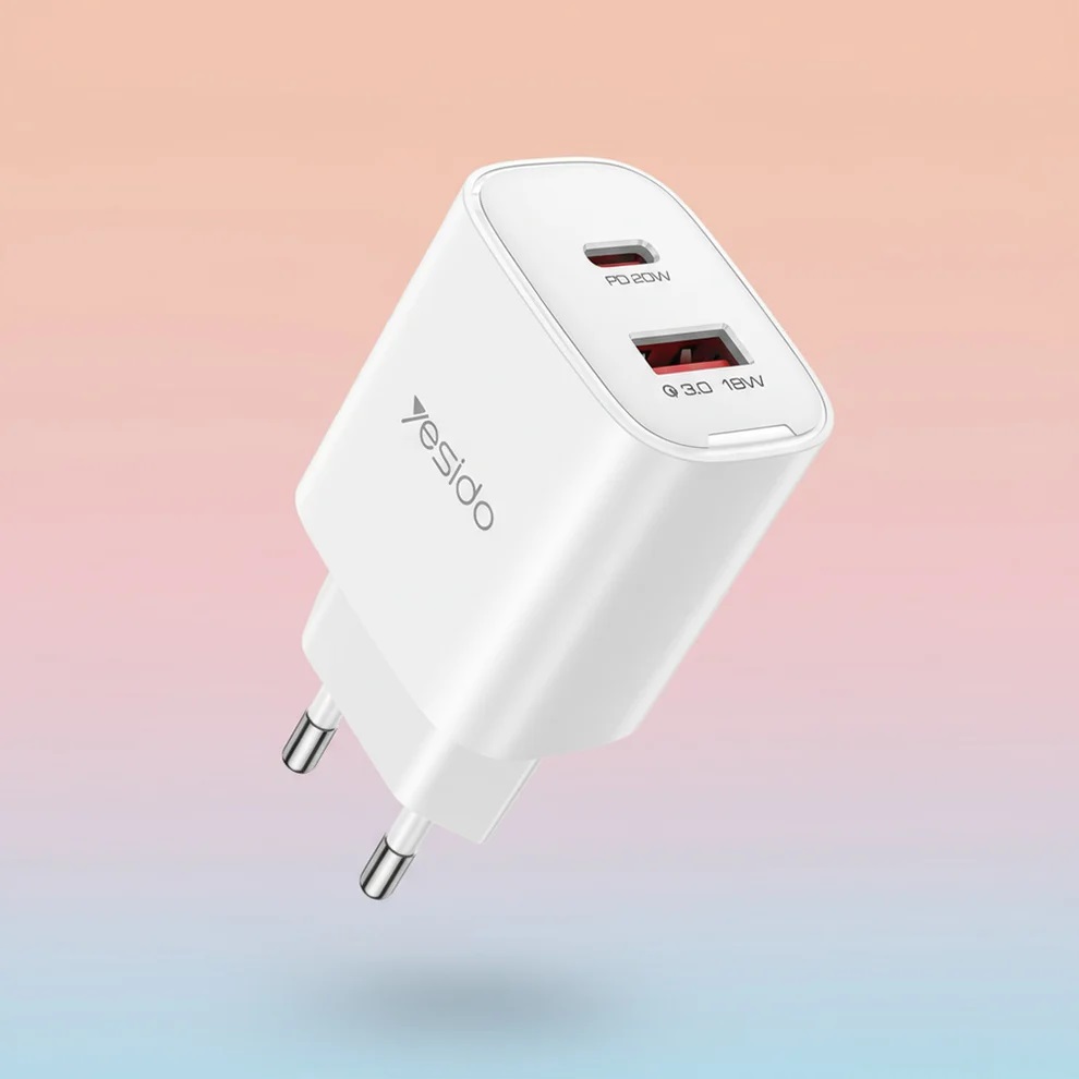 1.Yesido YC02E“ yra daugiafunkcinis įkroviklis su 20 W C tipo PD ir 18 W QC 3.0 USB išėjimais, užtikrinančiais greitą įkrovimą. Kompaktiškas dizainas ir dviejų išėjimų palaikymas leidžia greitai ir saugiai įkrauti įvairius įrenginius vienu metu.