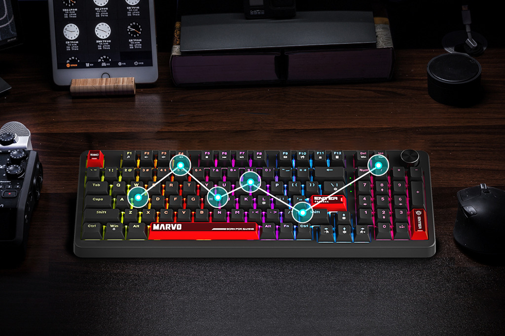 Pilnas Anti-Ghosting: Užtikrina, kad kiekvienas paspaudimas būtų tiksliai užfiksuotas net greito žaidimo metu.