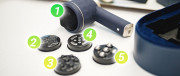 MEDIVON Lift 6in1 masažuoklis, 5 masažo galvutės, dėklas, dokumentacija.