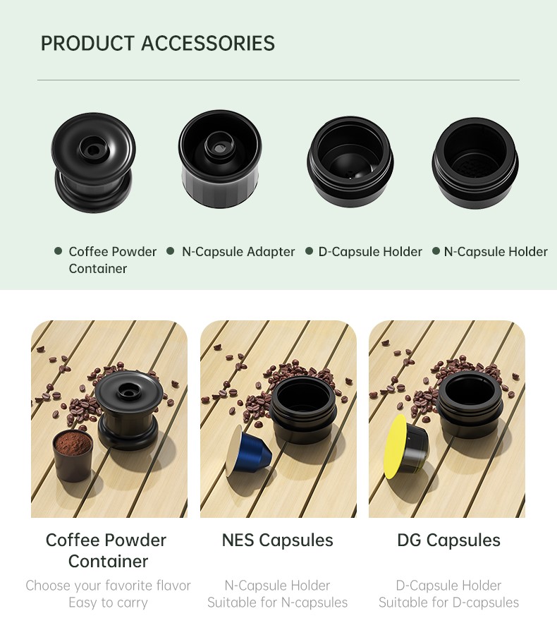 Nešiojamas kavos aparatas „Yesido EC30“, dvigubos paskirties, skirtas kapsulėms ir maltai kavai 2-IN-1.