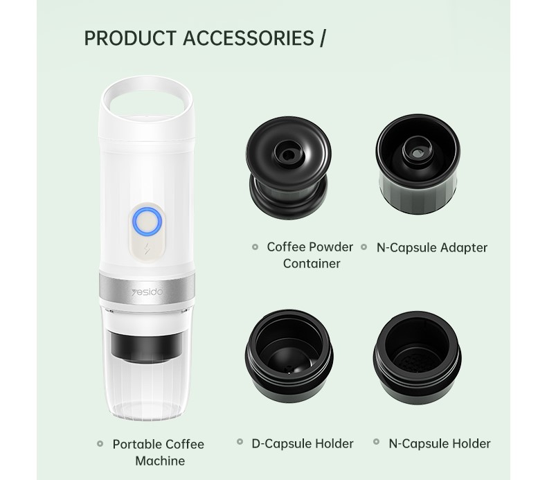 Nešiojamas mini kavos aparatas „Yesido EC30“ – dvigubos paskirties kapsulėms ir maltai kavai 2-IN-1