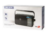 Nešiojamas FM radijas Blow RA5 priima AM ir FM dažnius – leidžia groti muziką iš pasirinktos radijo stoties. Radijas taip pat aprūpintas besisukančia teleskopine antena ir garsumo reguliavimo potenciometru. Radijas maitinamas baterijomis ir tinklo rozete. Jame taip pat yra 3,5 mm ausinių lizdas. Prietaisas turi originalią išvaizdą, kuris tiks bet kokiame interjere.