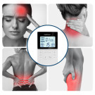 Komplekte: vartotojo instrukcija, USB įkrovimo laidas, LCD nuotolinio valdymo pultas, 4 daugkartiniai elektrodai 50×50 mm