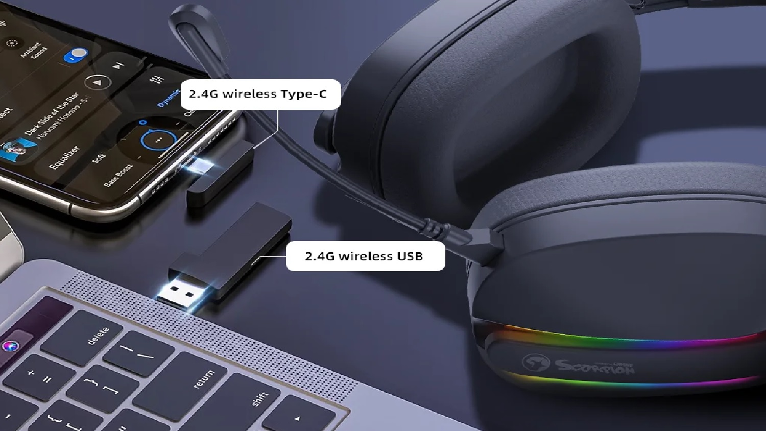 Mėgaukitės vėlavimo neturinčia patirtimi 2.4G belaidžiu režimu su mažu, vos 28 ms delsos laiku, užtikrindami, kad garsas puikiai sinchronizuotųsi su veiksmu ekrane.