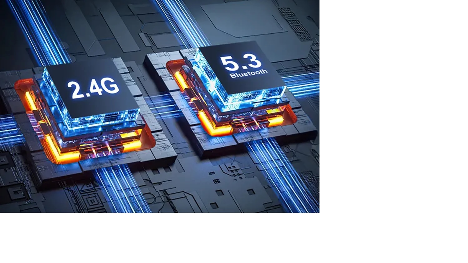 Dvigubas beaidis ryšys: mėgaukitės visiška laisve su „Bluetooth 5.3“ ir 2.4 GHz belaidžiais režimais, užtikrinančiais greitą susiejimą, stabilų signalą ir itin mažą delsą.