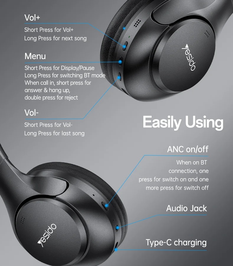 Ausinės Yesido EP09 ANC+ENC Wireless HiFi Sound
