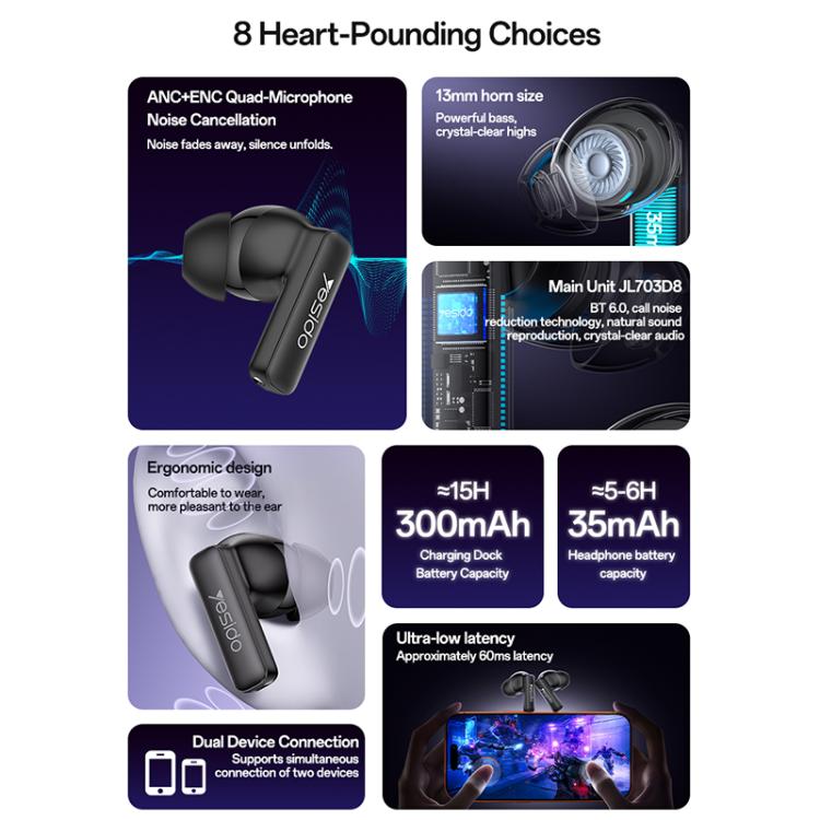 Ausinės Yesido TWS40 ANC+ENC
