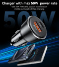 1.Automobilinis įkroviklio adapteris palaiko maksimalų 50 W greitą įkrovimą