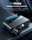 JOYROOM JR-CL06 įkroviklio bendra galia yra 154 vatai! 3 nuolatinės srovės maitinimo prievadai išsiskiria savo nepriklausoma jungiklio konstrukcija, o tai reiškia, kad kiekvieną iš jų galite įjungti ir išjungti atskirai. Jūsų dispozicijoje yra greito įkrovimo prievadai – 2 x USB QC 18W ir 1 x USB-C PD 20W, taip pat 3 USB prievadai, kurių bendra galia yra 18 vatų.