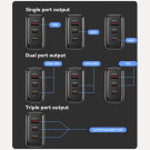 1.65 W greitas įkrovimas: Trijų prievadų (2C + 1A) įkroviklis užtikrina greitą įkrovimą neperkaitinant, užtikrinant greitą ir efektyvų energijos tiekimą