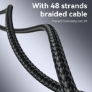 Medžiaga: nailono pintas kabelis + TPE + aliuminio lydinys