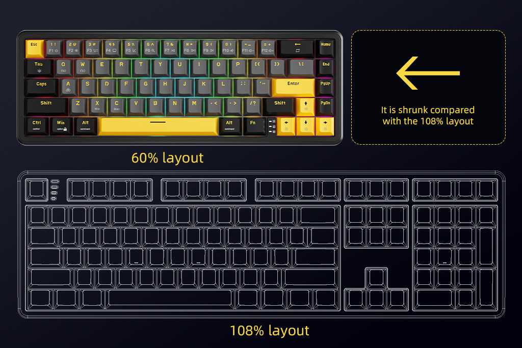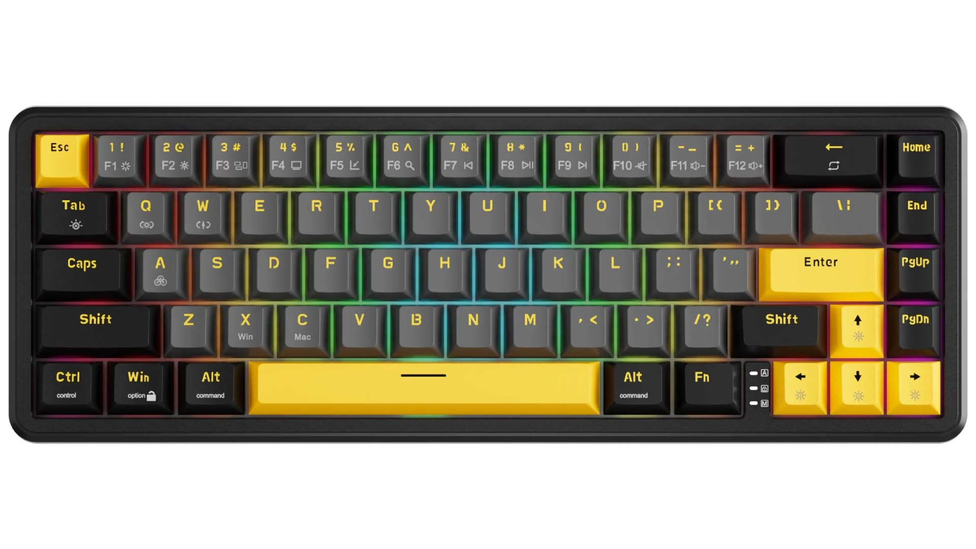 Optimizuokite savo darbo vietą su elegantišku ir kompaktišku 68 klavišų išdėstymu, kuris suteikia visas pagrindines funkcijas be nereikalingo svorio. Puikiai tinka minimalistiniams nustatymams arba naudojimui kelyje.