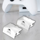 Komplekte yra dvi atsarginės baterijos, suderinamos su konsolės valdikliais