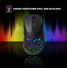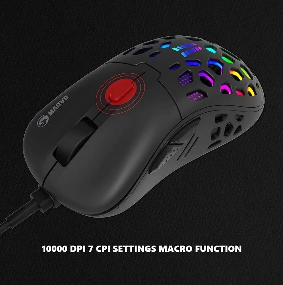 VIDINIS RMB RGB EFEKTAS – netaisyklingai išraižyto tuščiavidurio pelės korpuso vidinis kraštas pasižymi išskirtiniu VIVID RGB efektu, kuris sustiprina ir pagilina žaidimų atmosferą.
