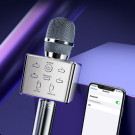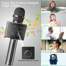 Karaokės mikrofonas su stebuklingu balso keitikliu, su šiuo mikrofonu yra 5 garso režimai: moters balsas, vaiko balsas, vyriškas balsas , siaubo ir natūralus balsas.