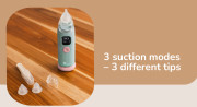 „NasoClear“ siūlo tris siurbimo režimus, kuriuos galima lengvai pritaikyti pagal jūsų vaiko poreikius. Nuo švelnaus siurbimo naujagimiams iki intensyvesnio siurbimo vyresniems vaikams – prietaisas efektyviai šalina nosies sekretą. Aspiratorius komplektuojamas su trimis skirtingais antgaliais: moliūgo formos antgaliu naujagimiams, tiesiu antgaliu seklioms vietoms ir kampuotu antgaliu vyresniems nei dvejų metų vaikams. Tokiu būdu vienu prietaisu gali naudotis broliai ir seserys, išlikdami higieniški ir saugūs. Tėvai gali būti tikri, kad ras tinkamą režimą ir sprendimą kiekvienai situacijai, todėl NasoClear yra esminė kasdienės vaikų priežiūros priemonė.
