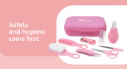 Jūsų vaiko saugumas yra mūsų prioritetas. Štai kodėl visi Pinky rinkinio įrankiai yra pagaminti iš aukštos kokybės, higieniškų medžiagų, kurios yra saugios gležnai kūdikių odai. Rankinis nosies aspiratorius, žirklės su užapvalintais galiukais ir švelnūs šepetėliai yra tobulos formos, kad užtikrintų saugią priežiūrą ir nesukeltų dirginimo.