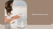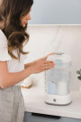 Sutaupykite laiko naudodami efektyvų „QuickSteam“ sterilizatorių. Greitas ciklas reiškia, kad jūsų vaiko maitinimo priedai yra sterilizuoti ir paruošti akimirksniu. Sterilizavimo pradžia mygtuko paspaudimu supaprastina užduotis, leidžia vienu prisilietimu pradėti sterilizavimo procesą, todėl tai yra puikus patogumo ir funkcionalumo derinys.