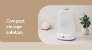 Dėl kompaktiškos konstrukcijos QuickSteam po sterilizacijos lengva laikyti. Jis lengvai telpa virtuvės spintelėse arba kartu su kitais kūdikių aksesuarais ir užima minimaliai vietos. Dėl šios savybės jis yra idealus sprendimas mažesniems namams ar virtuvėms, kuriose vietos yra labai mažai.