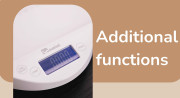 Papildomos funkcijos: automatinis išsijungimas, baterijos lygio indikatorius, svėrimo funkcija, įspėjimas apie išsikrovusią bateriją, didelio tikslumo jutiklis, konversijos jungiklis, LCD ekranas, perkrovos signalizacija, lengvas saugojimas, lengvas valymas, ilgio matavimas 0–60 cm
