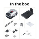 Genie 3000 - paruoštas naudojimui, visi komponentai supakuoti vienoje dėžėje. Tereikia atsisiųsti programėlę, prijungti įrenginį ir vos keliais paspaudimais pradėti automatinį, dirbtiniu intelektu paremtą vejos pjovimą. Jokio sudėtingo montavimo – tik išmanus paprastumas nuo pirmos minutės.