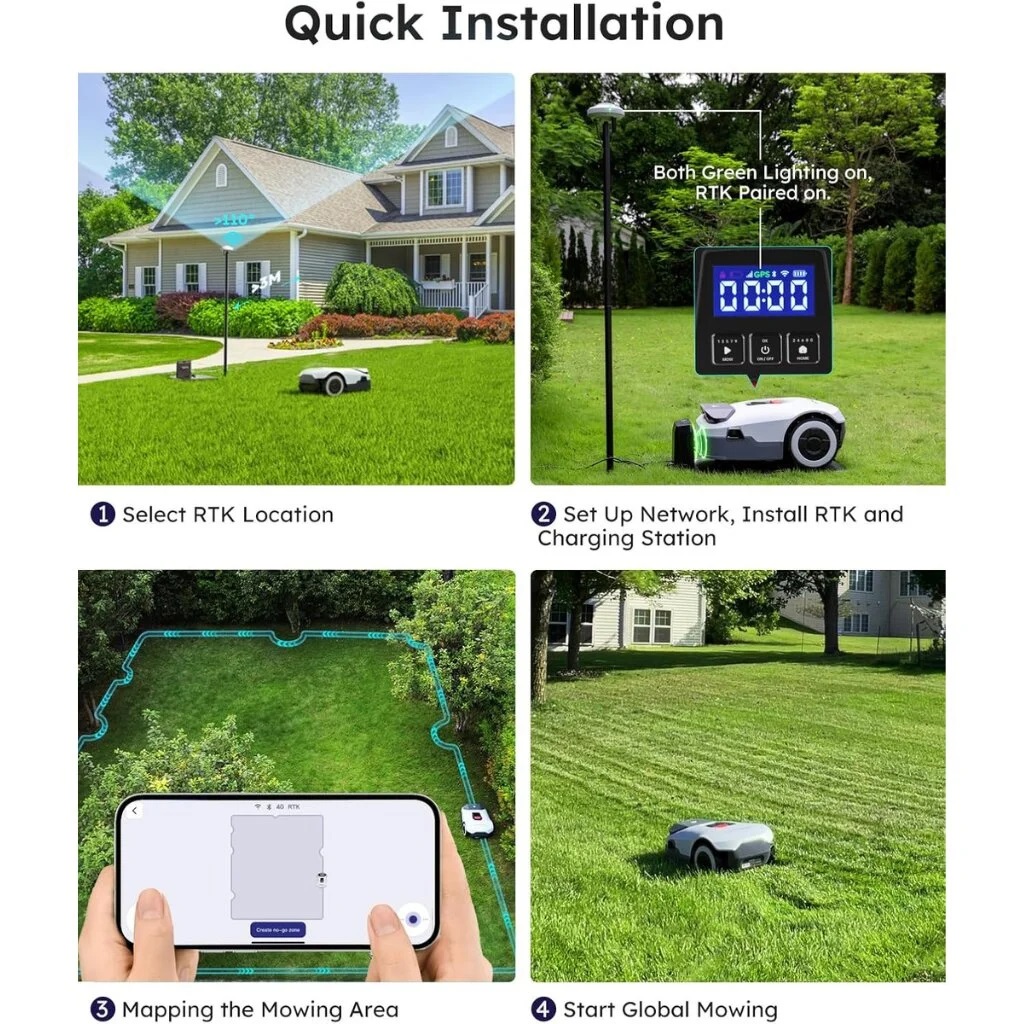 Anthbot Genie 3000 naudoja RTK-GNSS technologiją ir AI vaizdo atpažinimą, todėl jam nereikia įprastų perimetro laidų – tiesiog pastatykite, nustatykite zonas per programėlę ir robotas iš karto pasiruošęs darbui. Tai ženkliai sutaupo laiką ir pašalina montavimo rūpesčius.