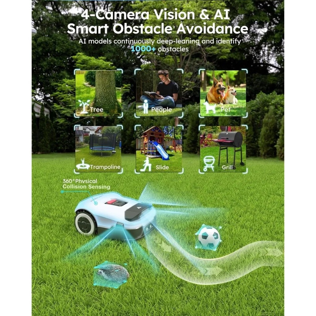 Integruota 4 kamerų sistema su 300° matymo kampu ir 360° susidūrimų aptikimu leidžia robotui realiu laiku analizuoti aplinką. Dirbtiniu intelektu paremta vaizdo atpažinimo sistema padeda robotui savarankiškai atpažinti aplinkos objektus ir priimti sprendimus realiu laiku.
